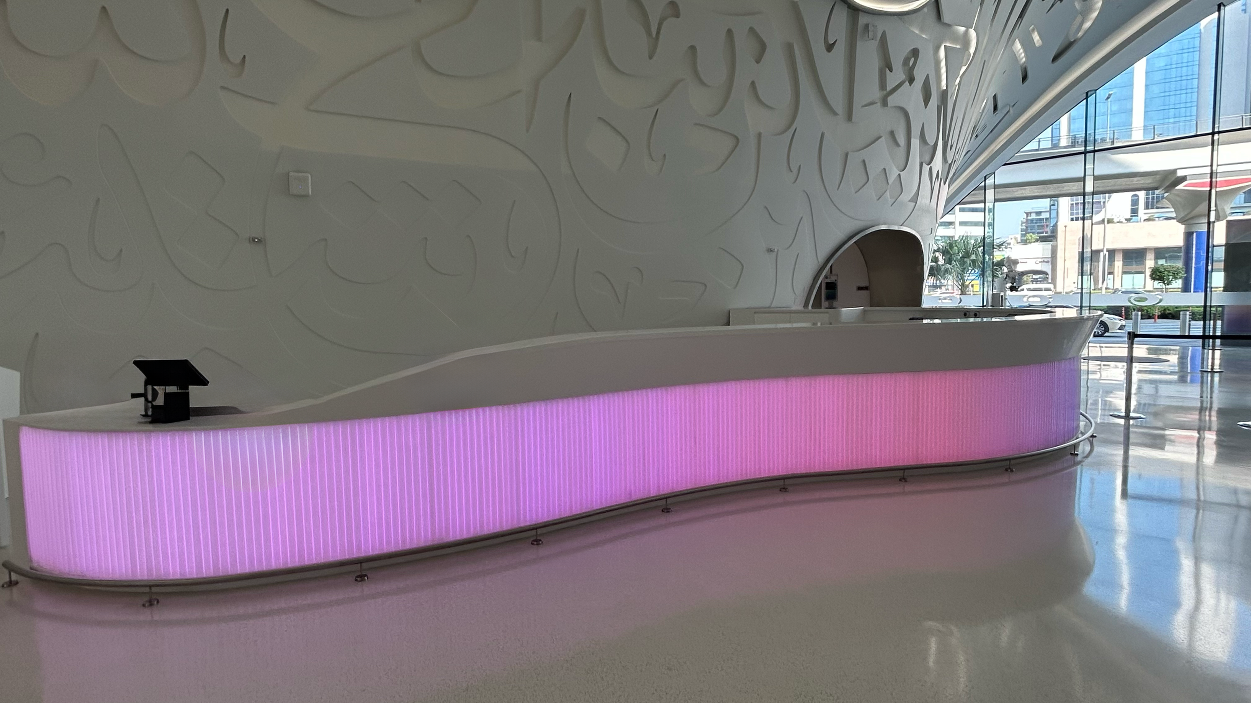 In the heart of Dubai’s Museum of the Future, we’ve crafted a bold new lobby experience - a sweeping curved reception counter where cutting-edge design and digital brilliance welcome every visitor.