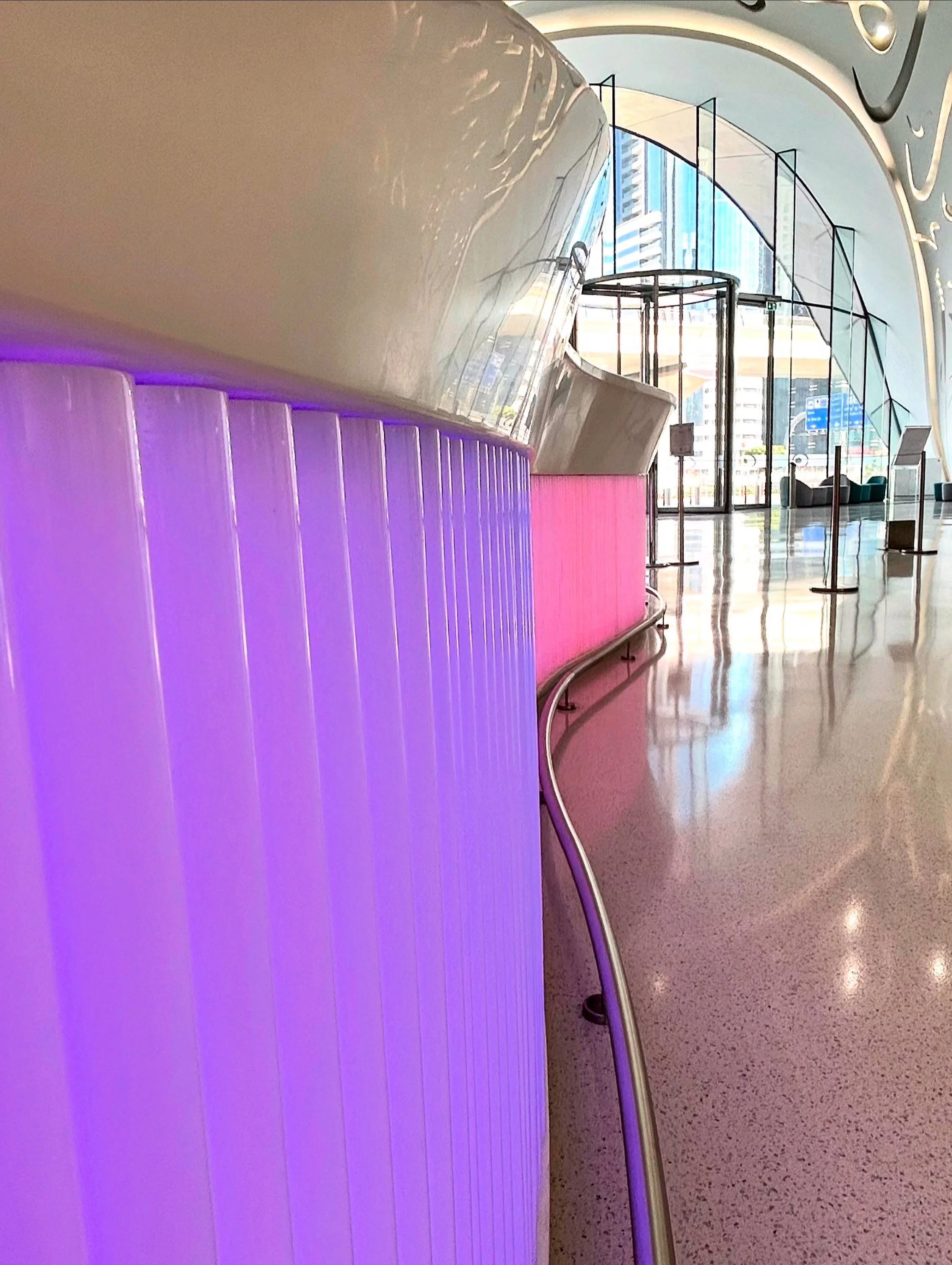 We have reimagined the arrival experience at the Museum of the Future in Dubai, transforming the lobby into a seamless blend of form, function, and innovation.